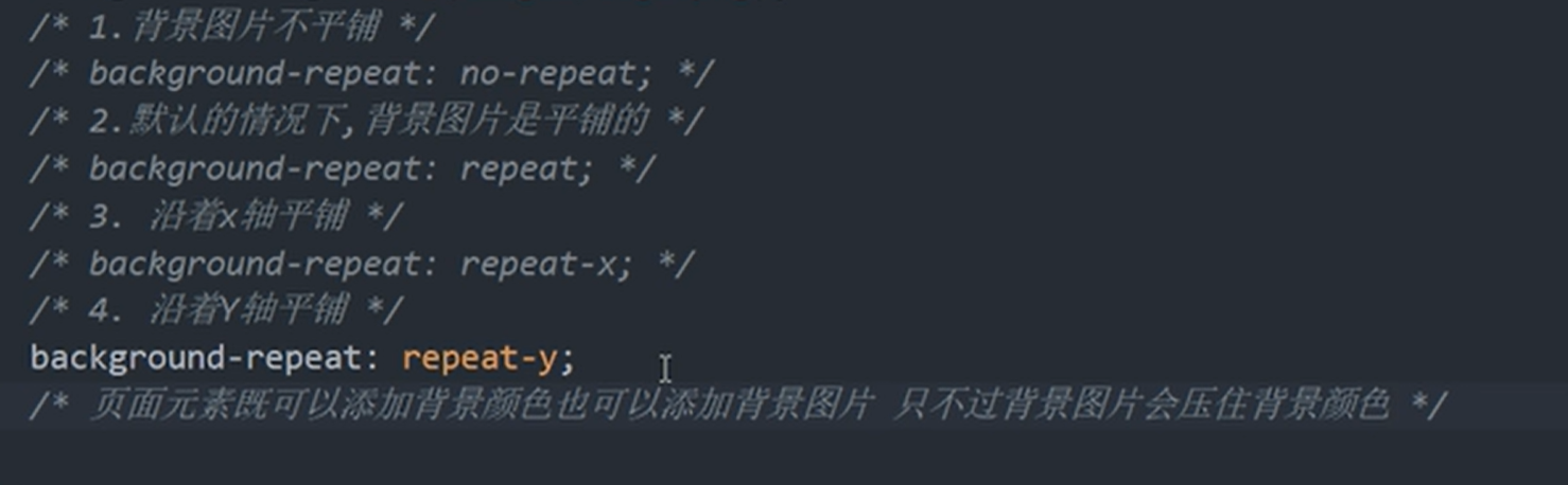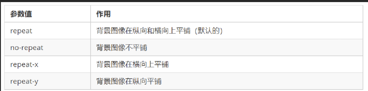 1 | background-repeat:repeat|no-repeat|repeat-x|repeat-y |