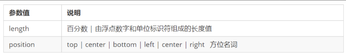 参数代表的意思是:x 坐标和 y 坐标。 可以使用 方位名词 或者 精确单位
