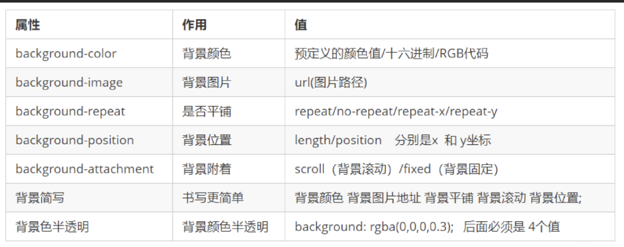 background: 背景颜色 背景图片地址 背景平铺 背景图像滚动 背景图片位置;