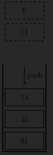 例如,栈中自顶向下的元素为 0,11,45,81。