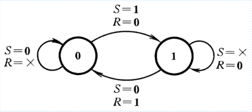S,R不同时为1。S,R同时为0,保持上一个状态。