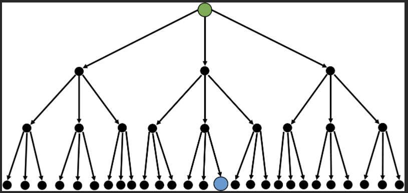 要从庞大的解答树中找到一根“针”,即终点,用蓝色表示