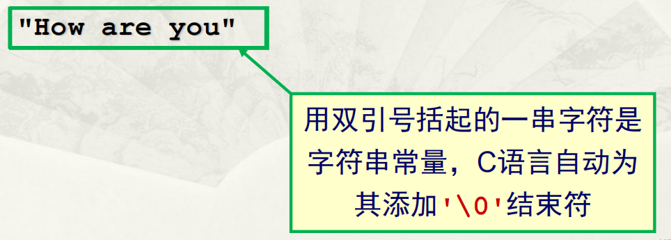 用双引号括起的一串字符是字符串常量,C语言自动为其添加’\0’结束符