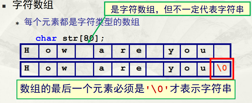数组的最后一个元素必须是’\0’才表示字符串
