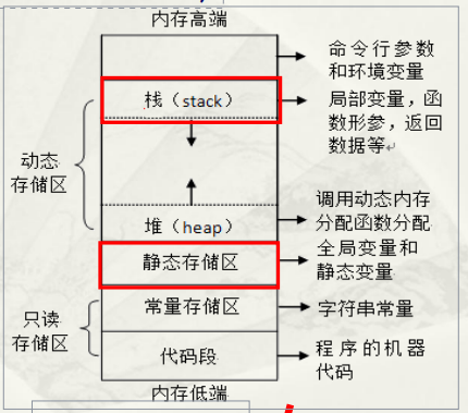函数内定义,保存在动态存储区