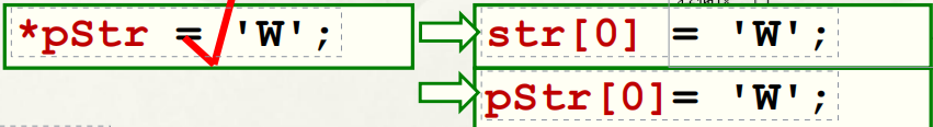 char str[]="Hello China";char *pStr;pStr = str;或pStr = &str[0];- pStr的值(指向)可以被修改,它所指向的字符串也可以被修改