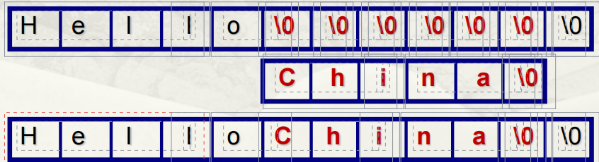 char str[6] = {'C','h','i','n','a','\0'}; -
