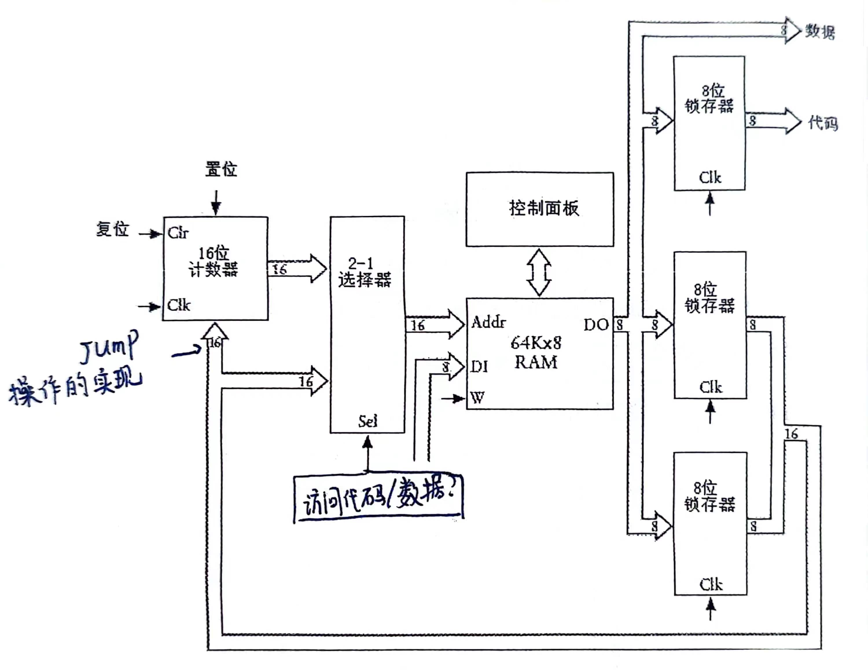 通常情况下,自动加法器以顺序方式对RAM阵列寻址,Jump指令改变了机器的寻址方式。