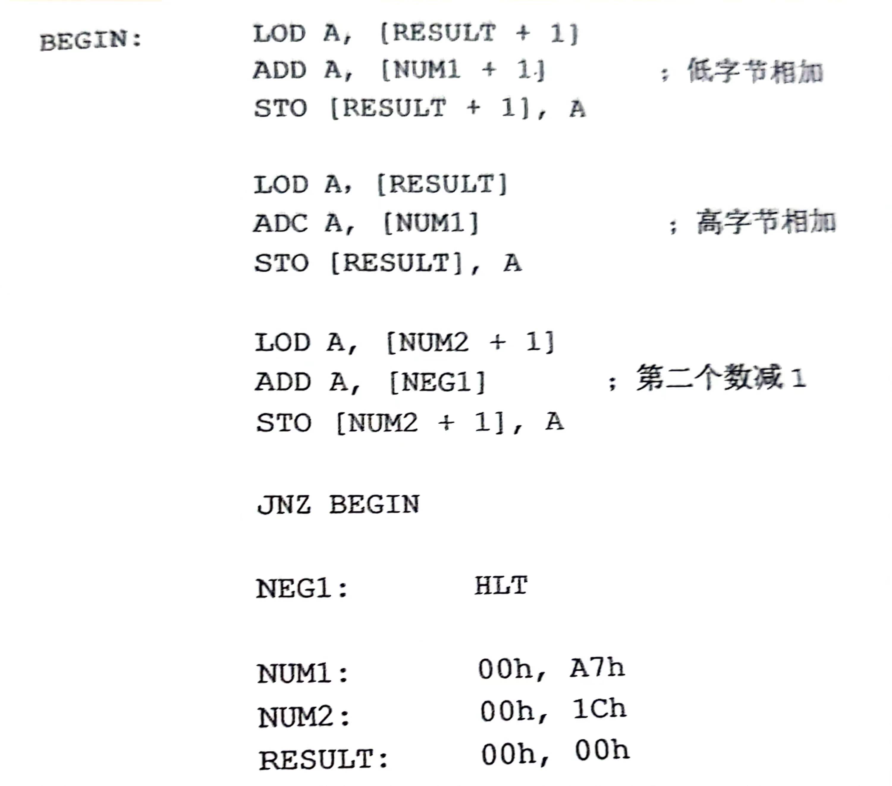 进行8位加法时,使用的是常规的Add指令。加法器的进位输入是0。当进行高位字节数相加时,要使用新的